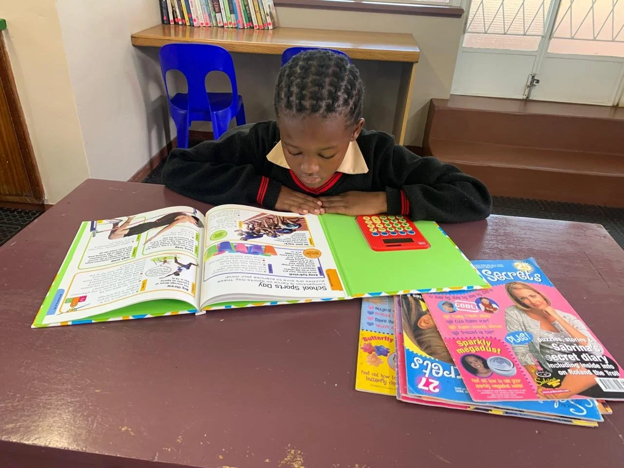 Thank you for the wonderful books you gave me. They are exactly what is needed for the library. I packed them out and onto a bookshelf and took a photo of them to send to you. They will be a great injection of “life” into the life of the library. I hope to open the library up in the new year for children to use.